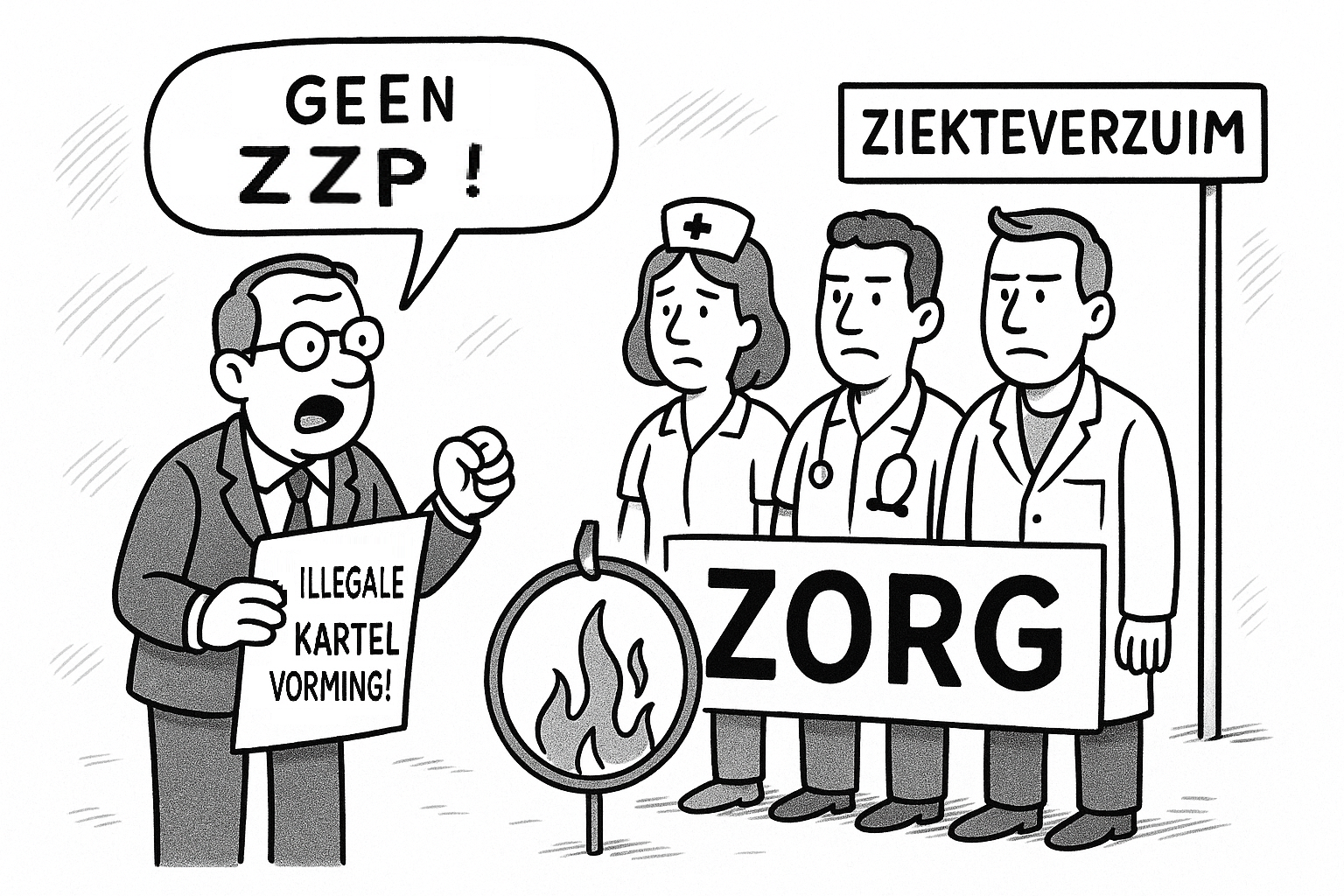 Onlangs hebben dertien grote en middelgrote zorgorganisaties, waaronder systeemaanbieders, de noodklok geluid bij de ministers van SZW, VWS en de staatssecretaris van LMZ. In alle regio’s in Nederland doen zorgorganisaties illegaal aan kartelvorming door gezamenlijk zzp'ers per definitie geen opdrachten meer te verstrekken.